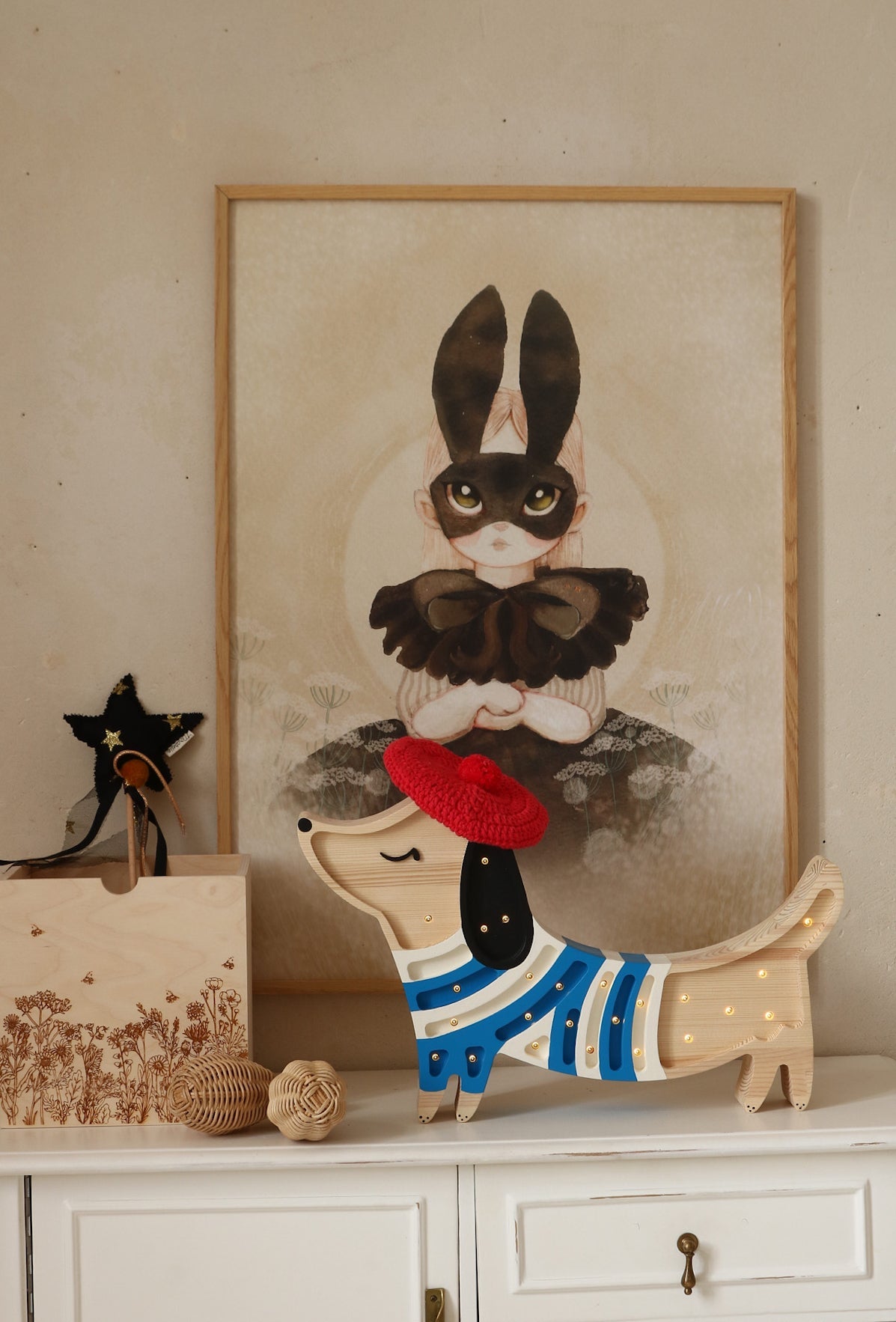 Fits perfectly in any nursery or kids' room decor, whether sitting bedside, on a dresser, or hung on the wall!