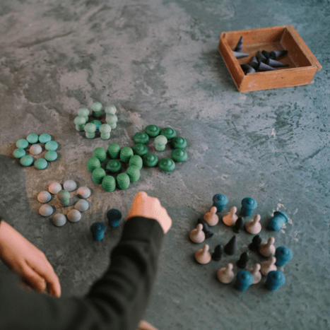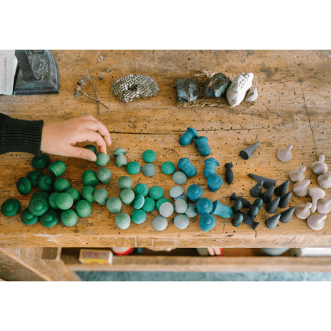 Grapat specializes in loose-part play that encourages open-ended imagination and creativity. Grapat's commitment to safe and sustainable play includes using water- and non-toxic dyes and wood from sustainable forests that hold certification PEFC 14-35-00485. All finishes are made with wax and oils of vegetable origin and products that include cotton bags have a GOTS Certificate (Global Organic Textile Standard).